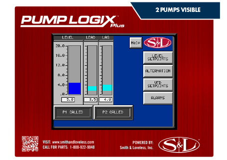 Upgrade your existing relay logic control panel by adding PUMPLOGIX™ Plus! Brings an HMI-ready LCD graphical interface, PLC controls, transducer indicated wet well levels, and SCADA connectability.