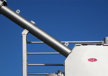 The discharge chute mounts to the discharge section of the screen.  Material choices include a stainless steel tube, PVC or vinyl hose.  The length of the chute can be made to match the specific installation.